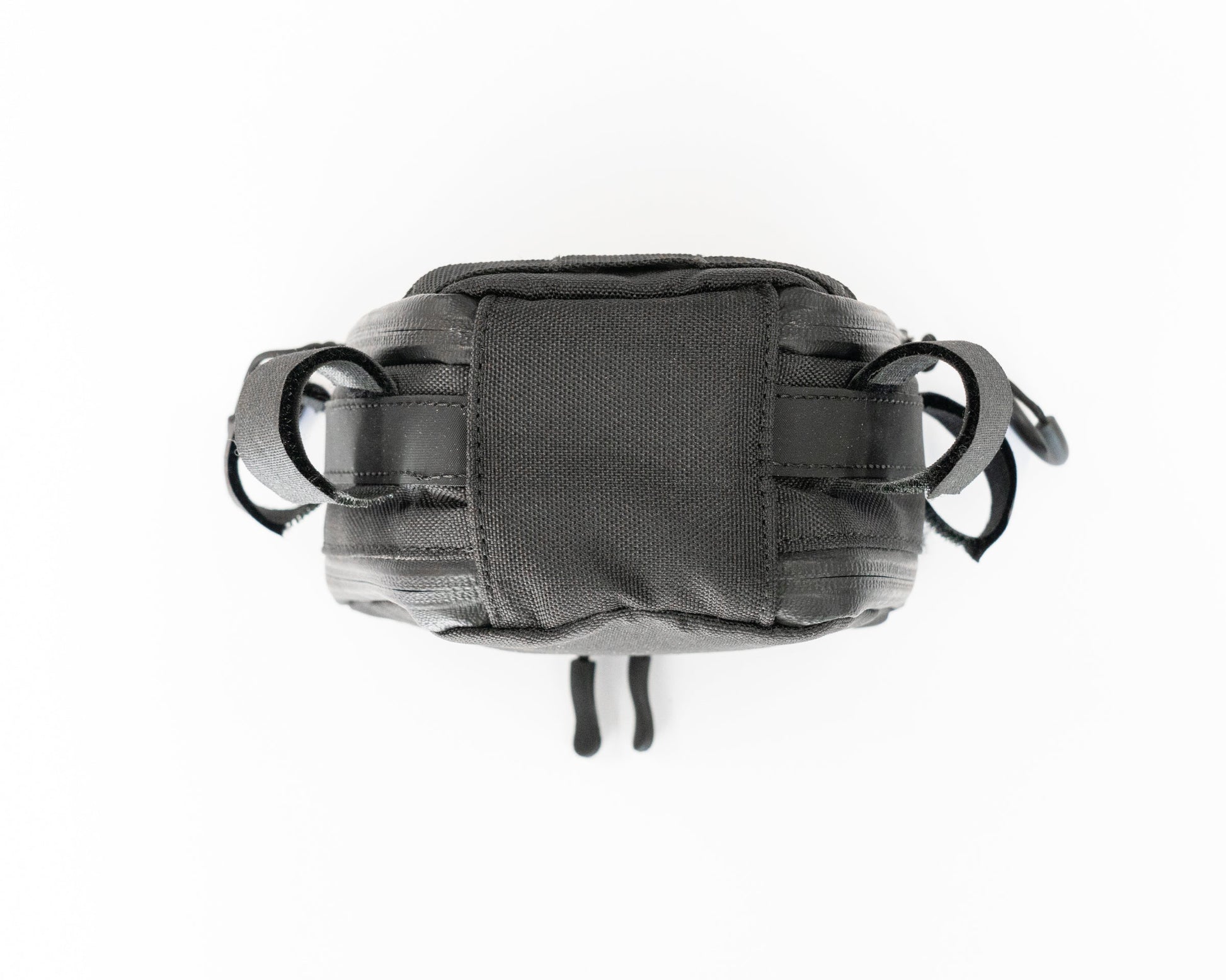 The bag securely attaches to the Kitchen Sink Handlebar loop via four velcro straps, keeping it from bouncing around while riding and protecting the contents inside. The bag is constructed of ballistic tear-proof nylon and utilizes premium YKK zippers throughout.