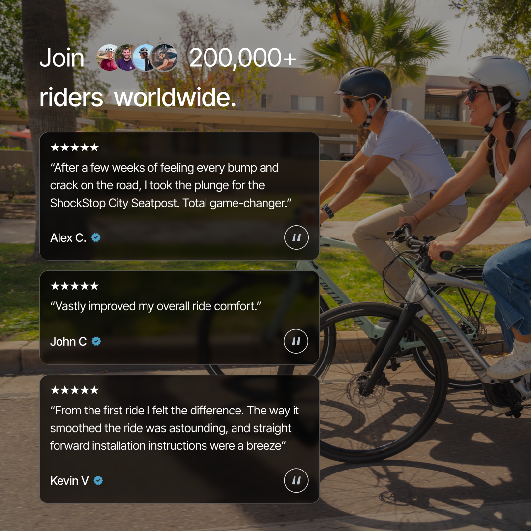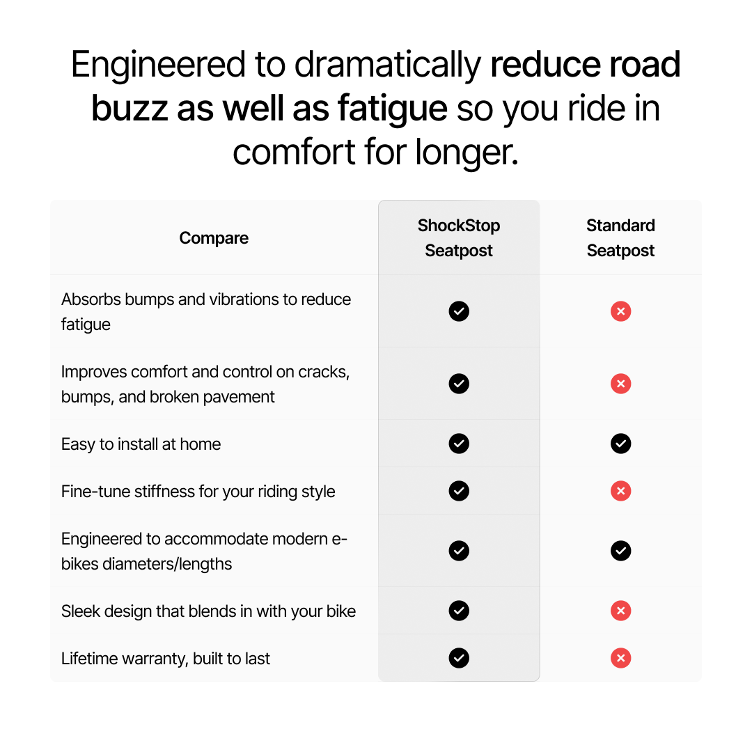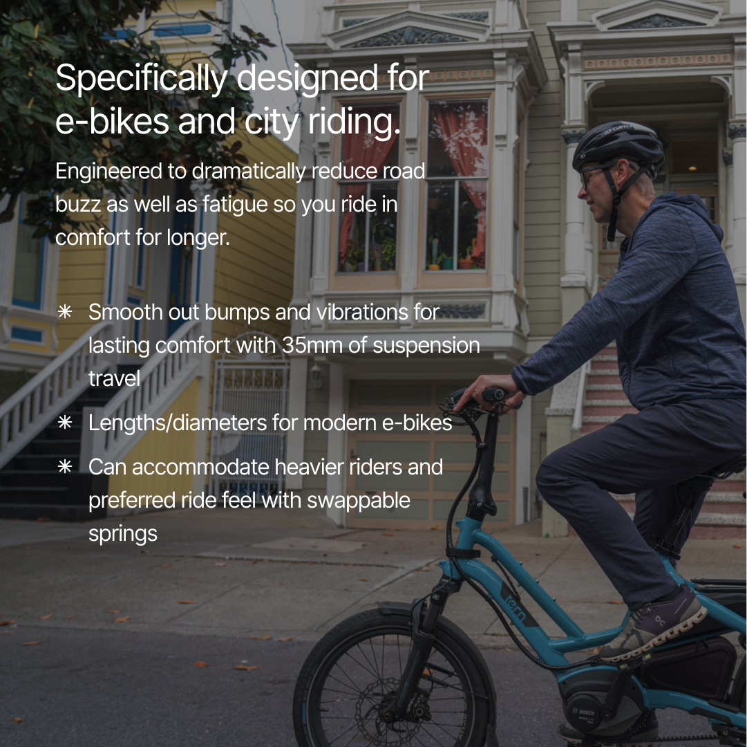 Eliminates road buzz and dampens impact forces, reducing strain on hands, wrists, shoulders and back.